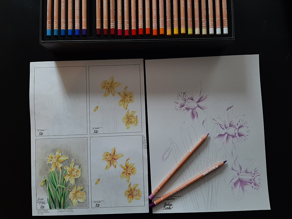 Coloring packs come with three sheets: 1 practice sheet and 2 final sheets. You can use your practice sheet to try different values, color distributions, and techniques. Feeling confident? Use your practice sheet to create finished works that you can send to your friends!