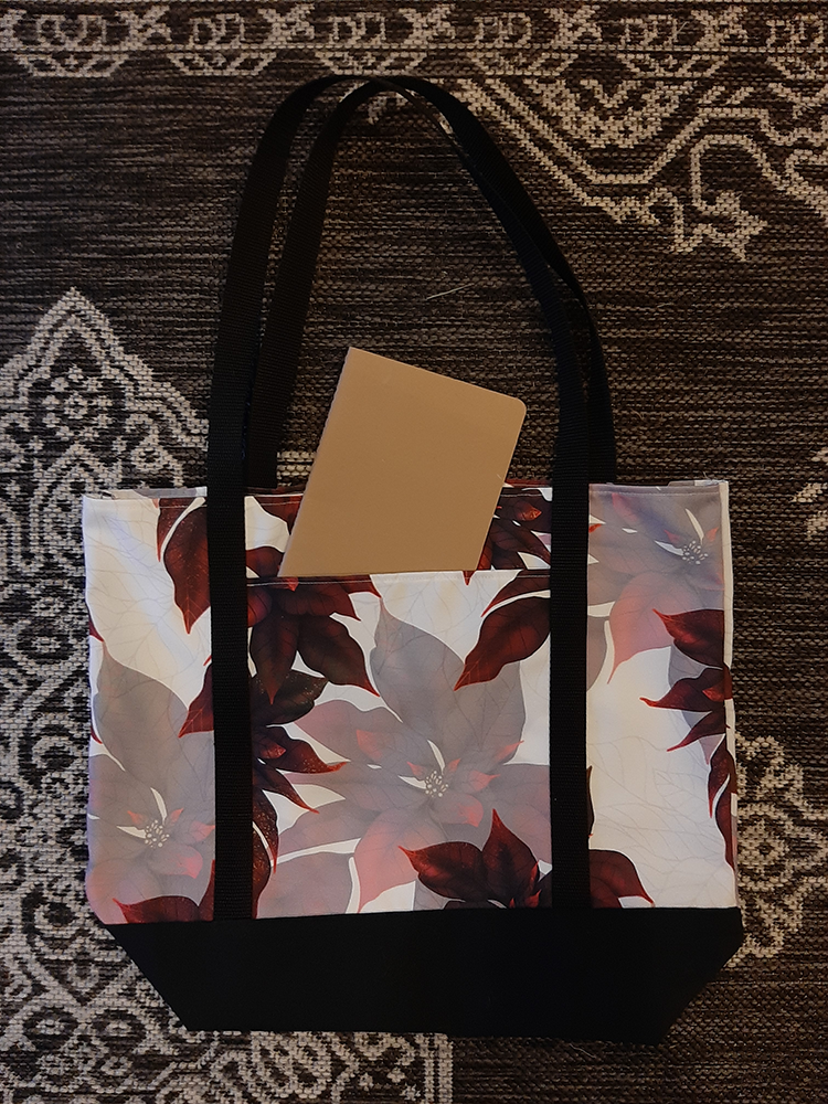 Roslyn makes fashionable tote bags. Each tote bag is made with highly lightfast recycled canvas fabric that has her designs printed on it. Large tote bags are also made with a strong cotton canvas base.